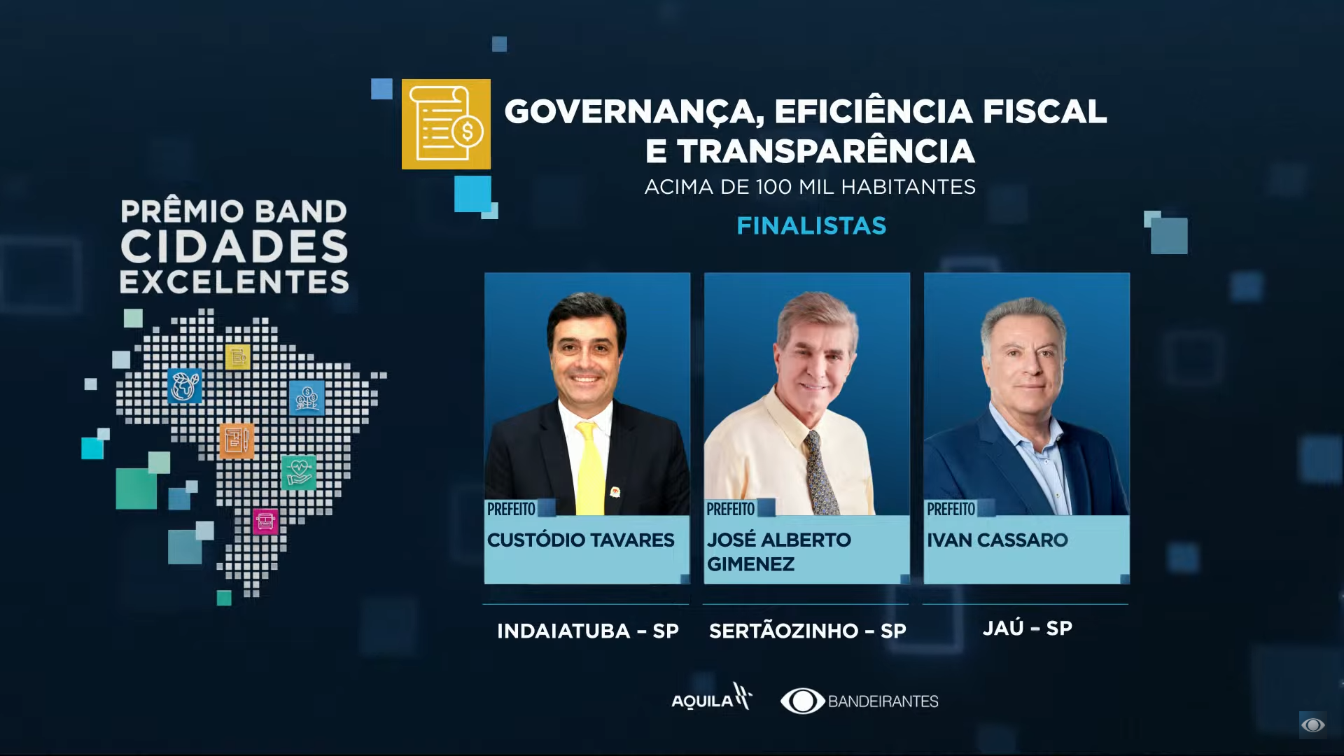 A premiação, que é realizada pela Rede Bandeirantes em parceria com o Instituto Áquila, que leva em consideração o Índice de Gestão Municipal Aquila (IGMA), uma plataforma que, por meio da inteligência artificial, avalia o resultado de 72 indicadores.