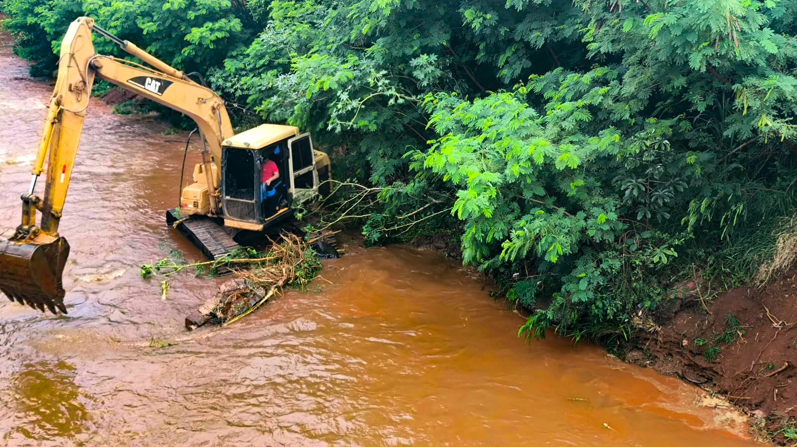 Nesta região o serviço tem como objetivo remover sedimentos, troncos e galhos depositados no leito do rio, assim como realizar a correção dos taludes.