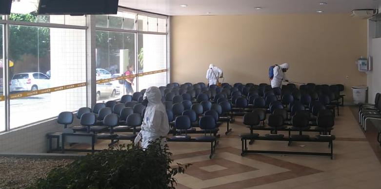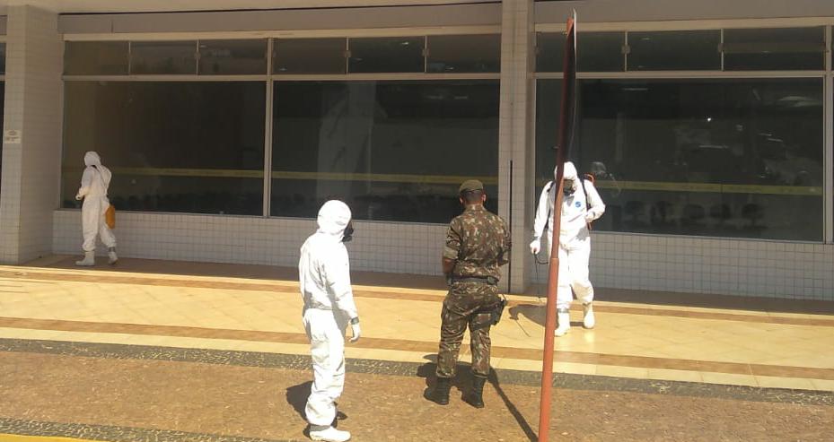 Militares trabalham na desinfecção de locais públicos